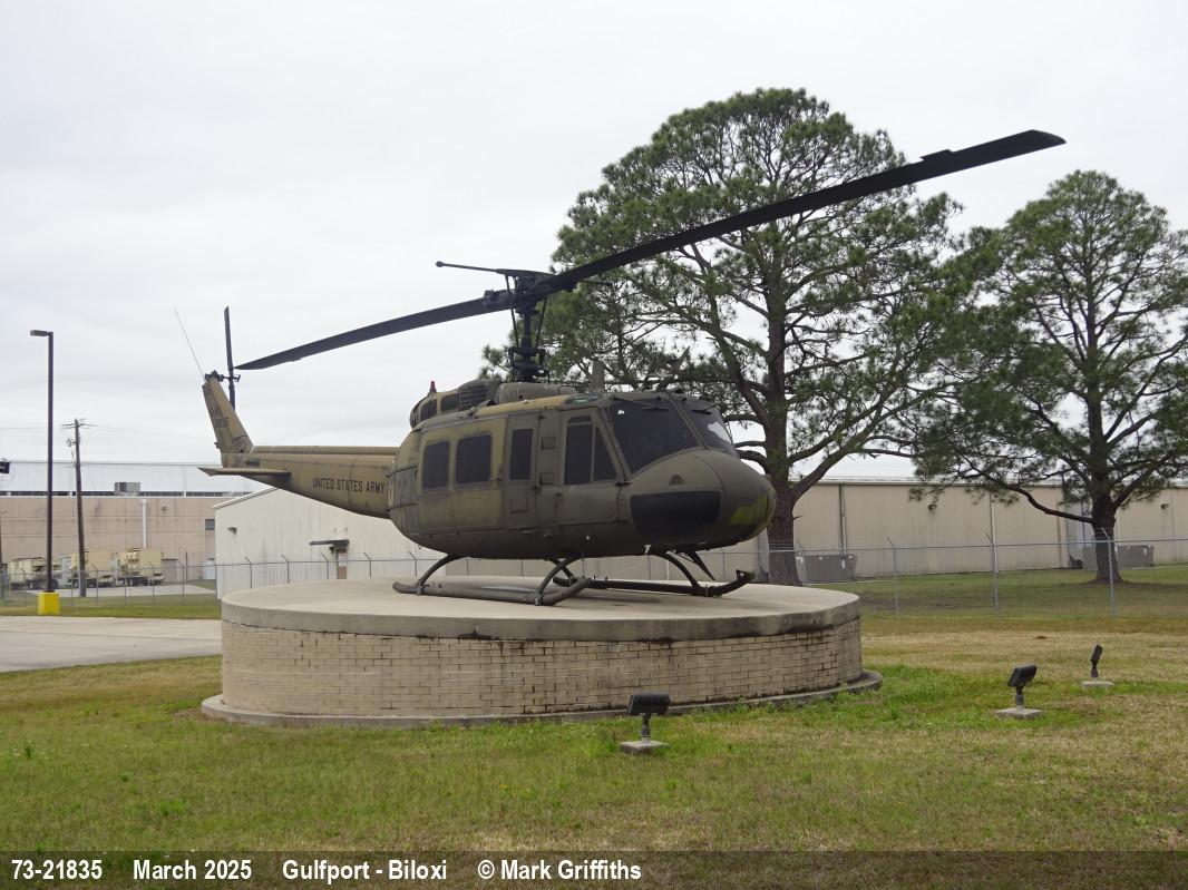 73-21835 | Bell Iroquois UH-1H | Ex USAR | Preserved, outside | Mar 2025 | |