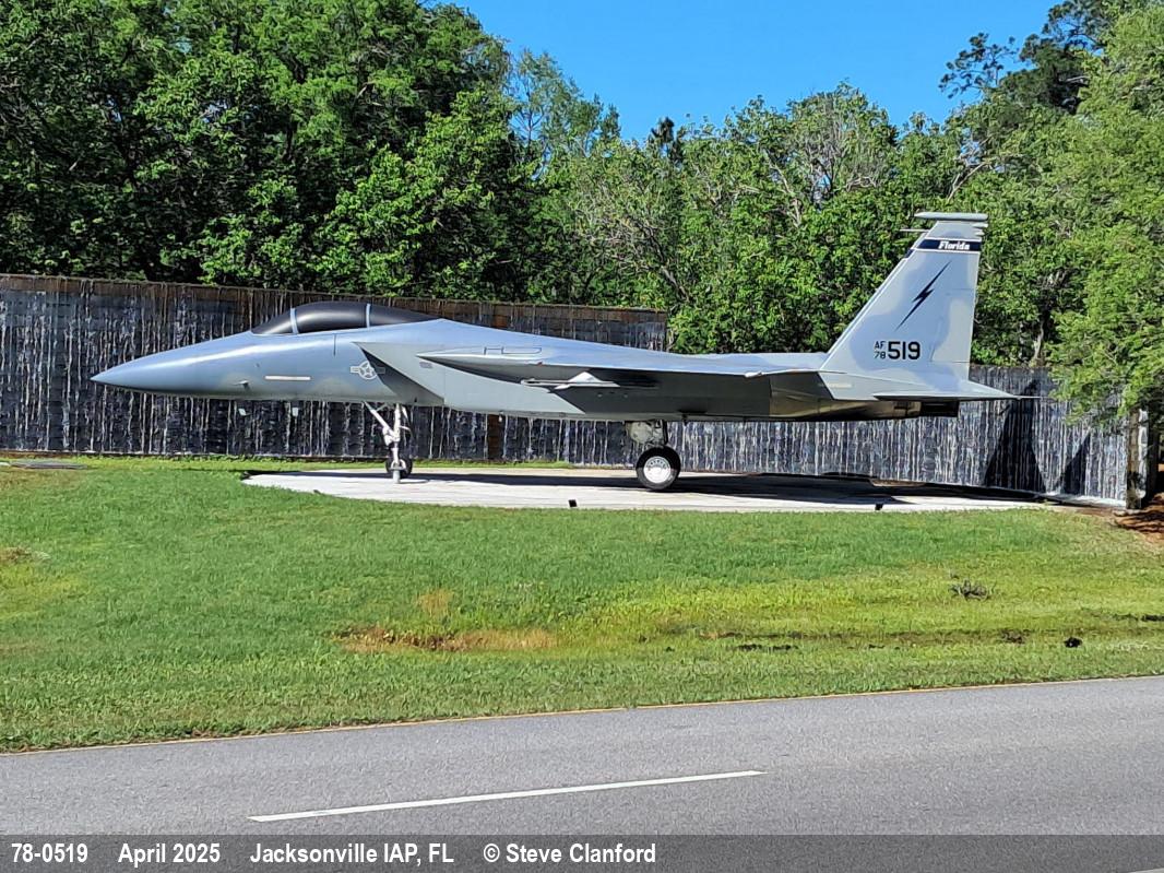 78-0519 | McDD Eagle F-15C | Ex USAF, (at 30.490843, -81.675030) | Preserved, outside | Apr 2025 | |