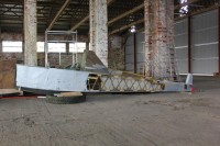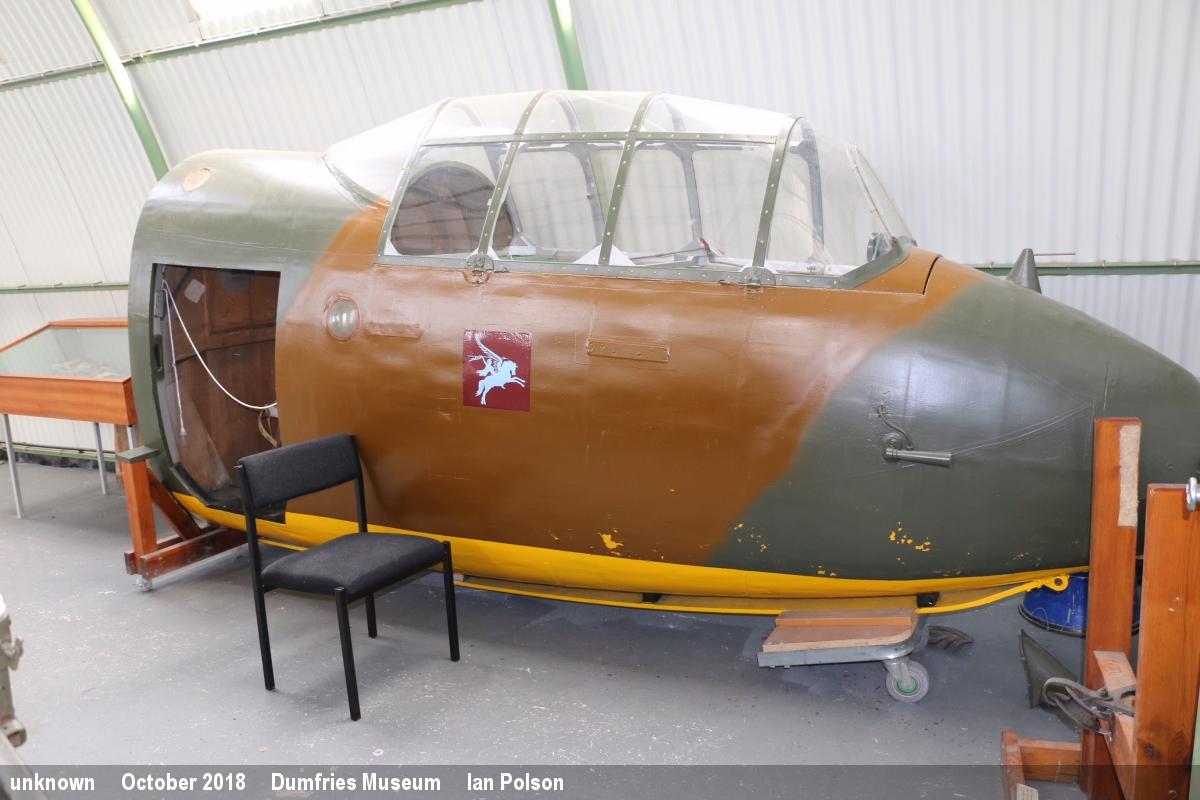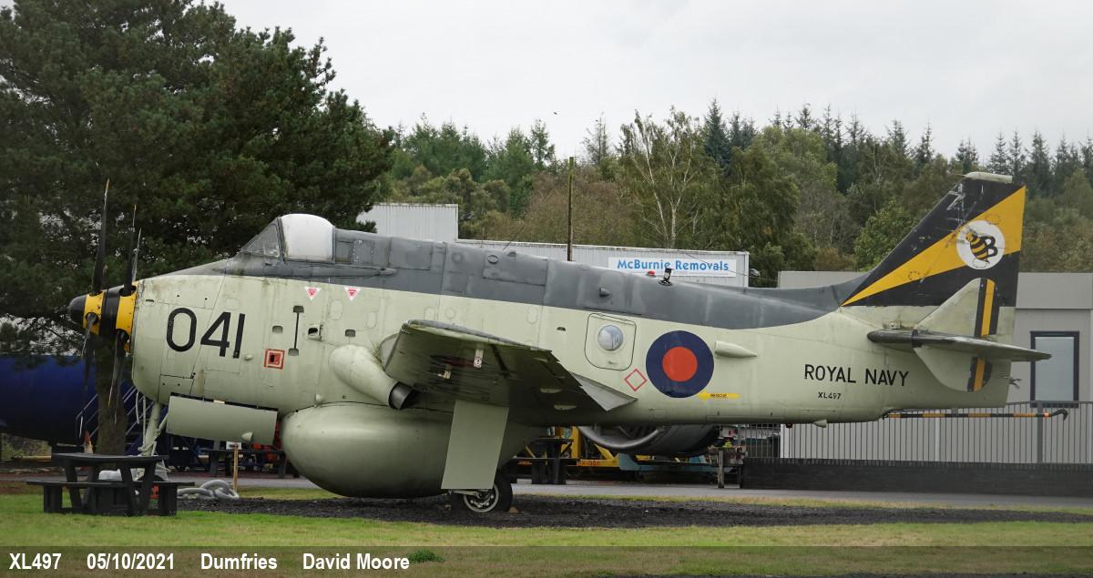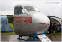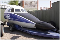 | Nose section in blue and white Fleet Air Arm scheme, trailer mounted |