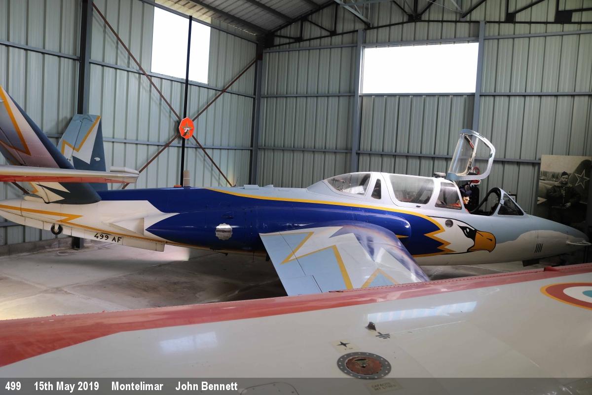 | aw/cn 15/03/1961, d/d 15/03/1961 to C(A) same day on free loan for 6 weeks, to No.27 MU Shawbury 11/07/1961, to 3 FTS Leeming 16/08/1961 coded 1, CAT 3R Flying Accident 01/10/1971, repaired and returned to 3 FTS 08/12/1971 coded 1, to BAC Warton 19/12/1973 for conversion to T3A standard, returned to 3 FTS Leeming 17/05/1974 coded 21, to 1 FTS Linton-on-Ouse 16/09/1974 coded 21, to No.5 MU Kemble 13/02/1981 for mainplane change, to 1 FTS Linton-on-Ouse 25/03/1981, to No.5 MU Kemble 29/05/1981 for surface finish, to 1 FTS Linton-on-Ouse 30/06/1981, to 7 FTS Church Fenton 19/05/1987, to Scampton CWP 17/08/1987, to 7 FTS Church Fenton 10/09/1987 coded 92, to Scampton 27/10/1988 for ground instructional use, stripped for spares during 10/1988, placed for tender during 01/1989 (total flying 9197 hours) and sold to a private collector at Chassey, France during 10/1989, to Montelimar Museum |