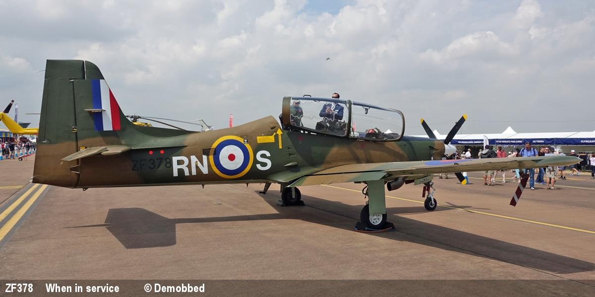 | ZF378 | Short Tucano T1 | RN-S, special marks, 'Enniskillen' | Museum, restoration | Nov 2024 | |
