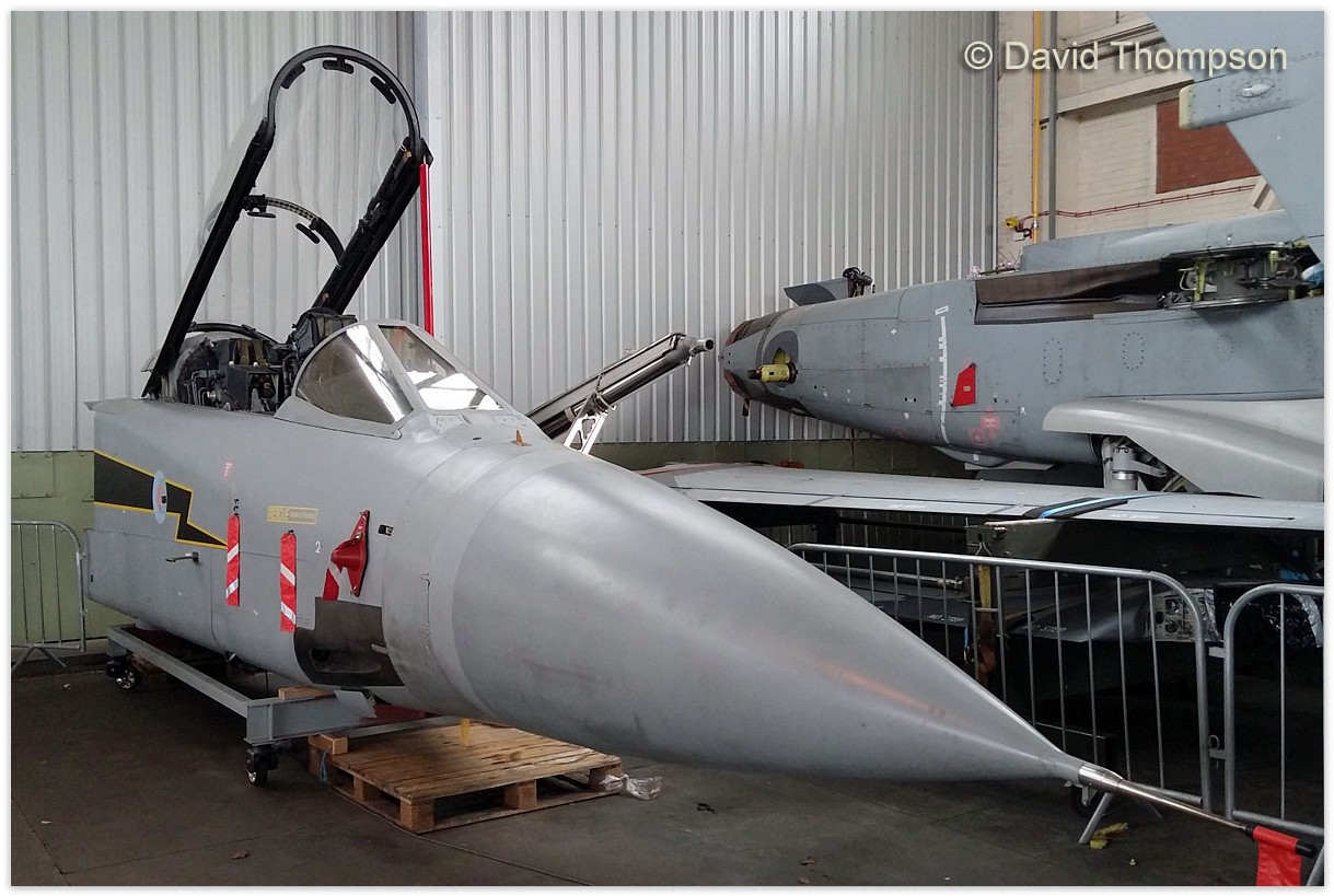 | Forward fuselage, Red Arrows colours. Mated with old rear fuselage from XX339 (black scheme) |