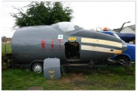 | Nose section in blue and white Fleet Air Arm scheme, trailer mounted |