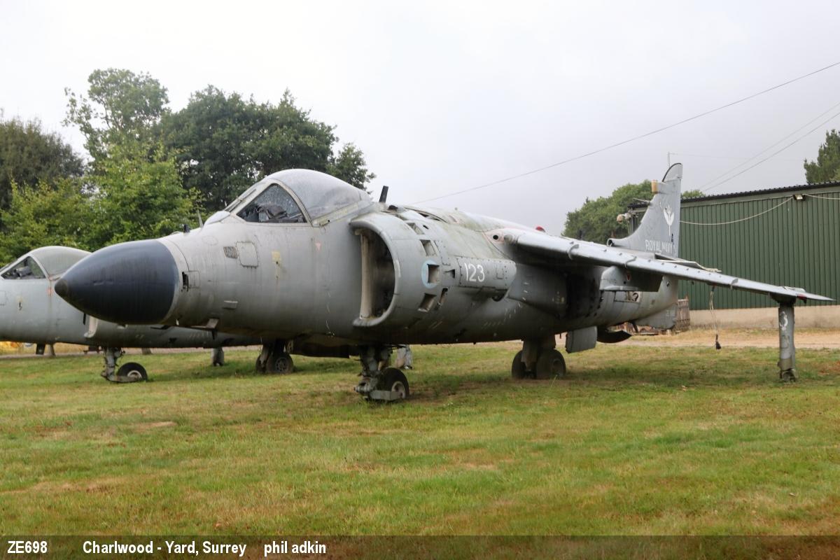 | ZE698 | BAe Sea Harrier F/A2 | 123, 801 NAS marks | Preserved, outside | Jan 2024 |
