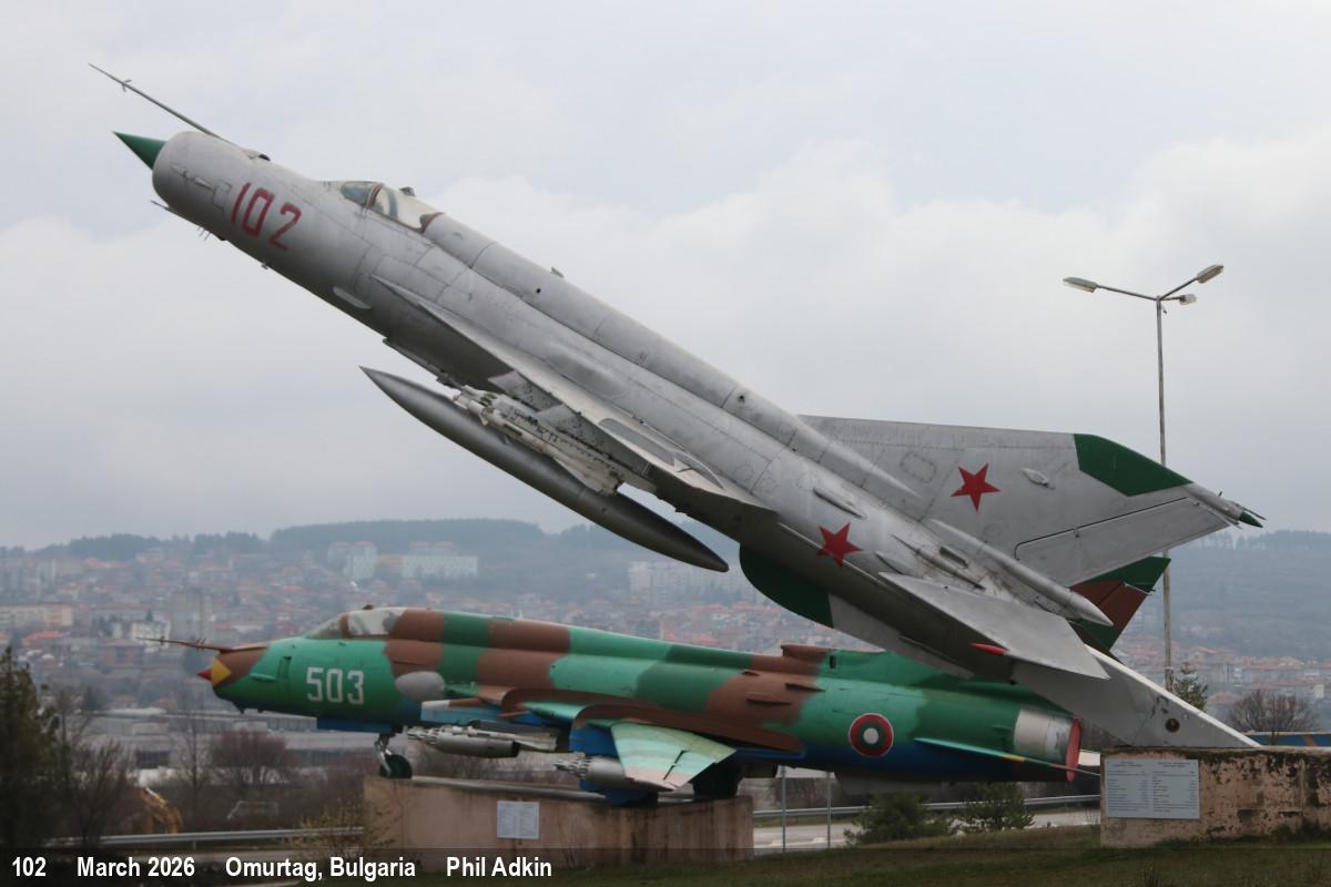 | 102 | Mikoyan - Gurevich MiG-21 bis | Ex BulAF | Preserved, pole mounted | Aug 2024 | |