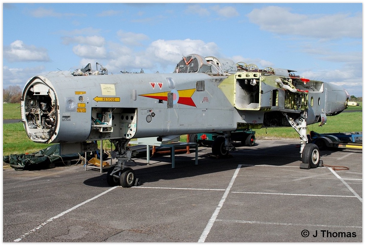 | Forward fuselage, Red Arrows colours. Mated with old rear fuselage from XX339 (black scheme) |