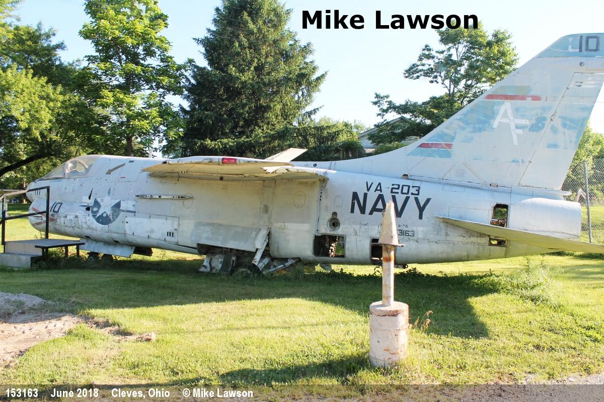 | 153163 | LTV Corsair II A-7A | AF-10, ex USN, VA-203 marks | Preserved, outside | Jun 2018 | |